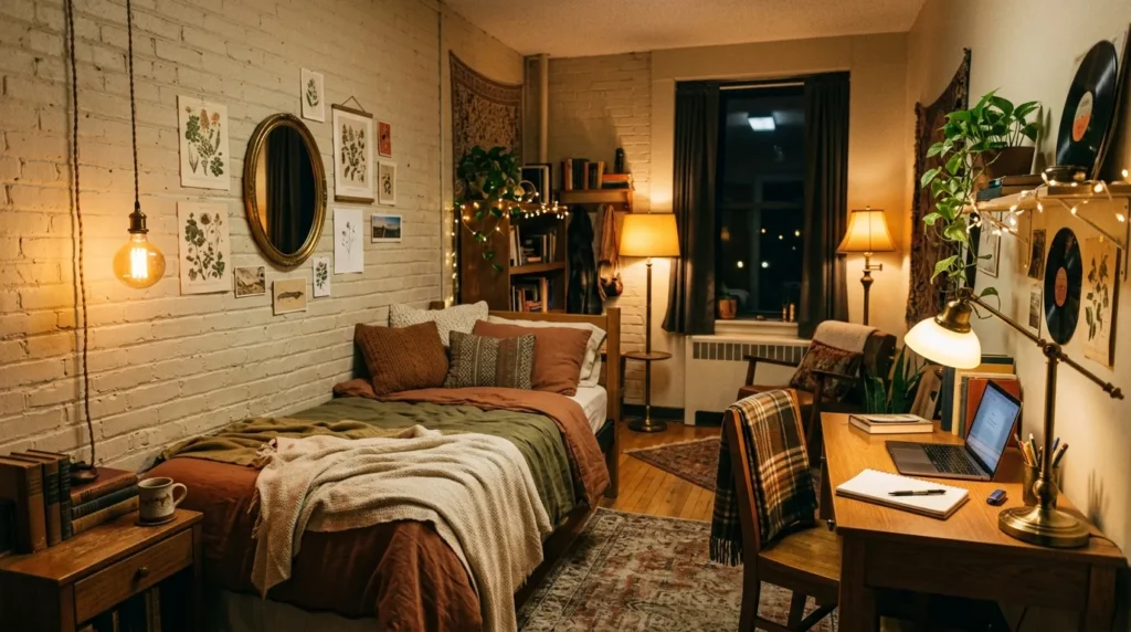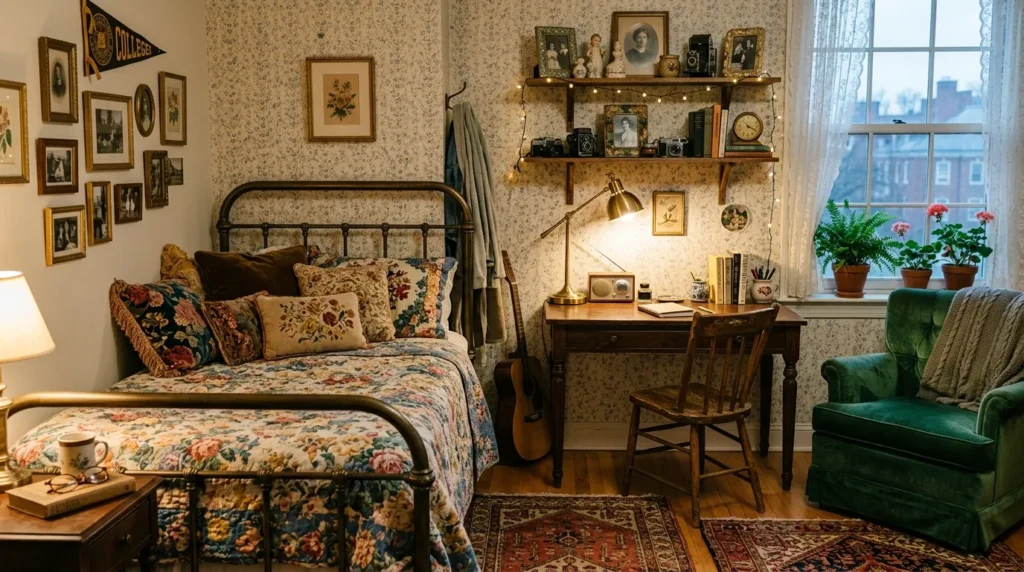 This is one of those details that feels small but makes a big difference. Lighting shapes the mood of the entire space, and vintage fixtures bring a soft, nostalgic touch that works surprisingly well in dorm rooms. Even one beautiful lamp can make the room feel more stylish, relaxed, and personal.