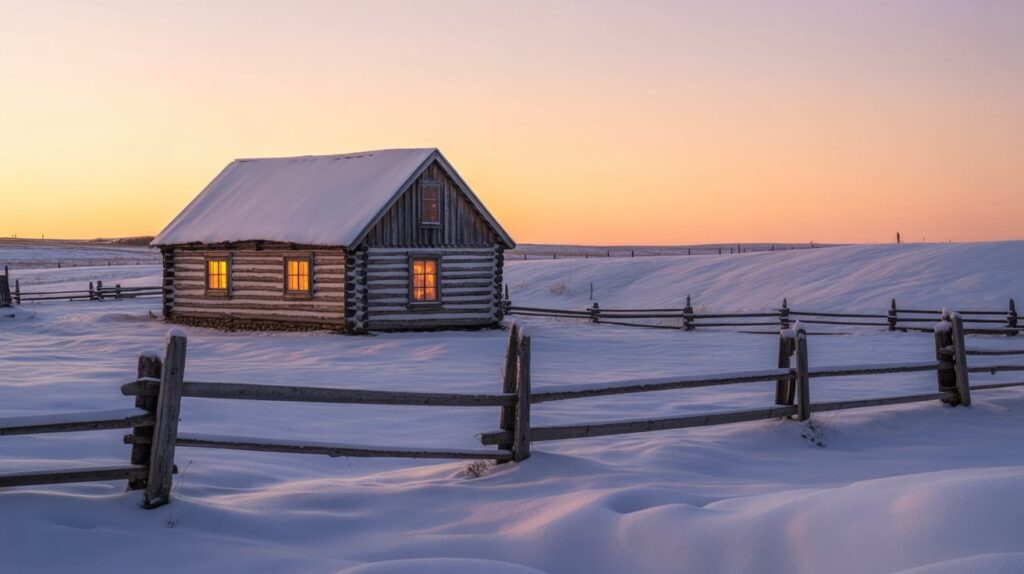 16) Farm Cabin Stay With Snowy Fields and Quiet Mornings