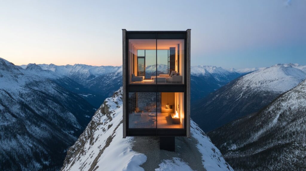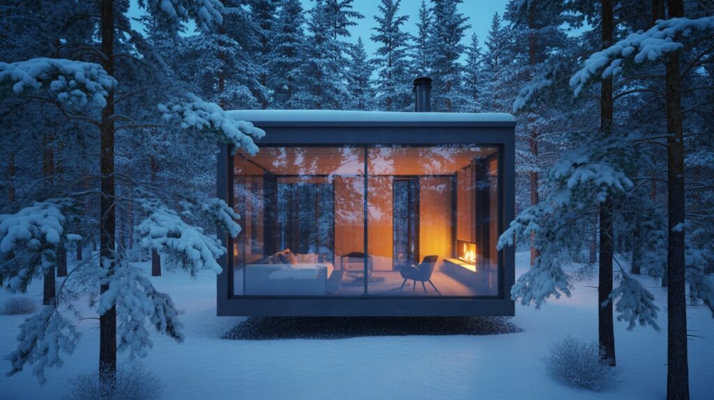 A glass-walled cabin makes the snow the main event. It’s perfect for travelers who want the outdoors without constant cold, because the view stays wide even when you’re wrapped in blankets. Look for a cabin with a fireplace positioned near the windows so you can sit with heat and still feel surrounded by winter. Add a simple dining table, a deep sofa, and soft lighting, and the whole weekend becomes a cozy viewing lounge.