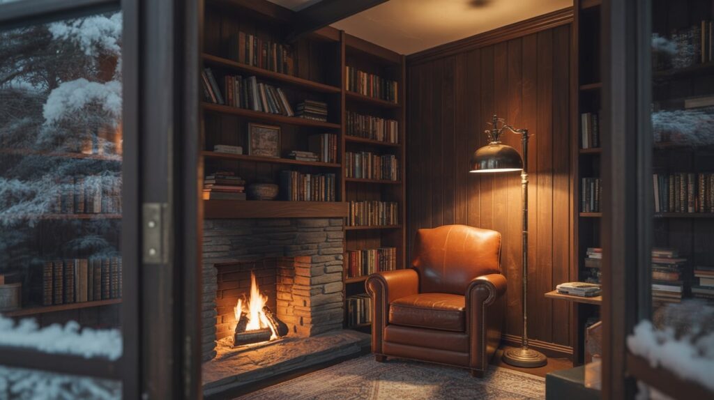 A bookish cabin is a winter dream because it gives you a reason to stay in without boredom. Look for a fireplace near a reading chair and shelves that actually look stocked, not staged. A stay like this turns your weekend into a quiet retreat: tea, chapters, and soft music while snow falls outside. It’s ideal when you want calm more than activities, and it feels luxurious in a simple way.