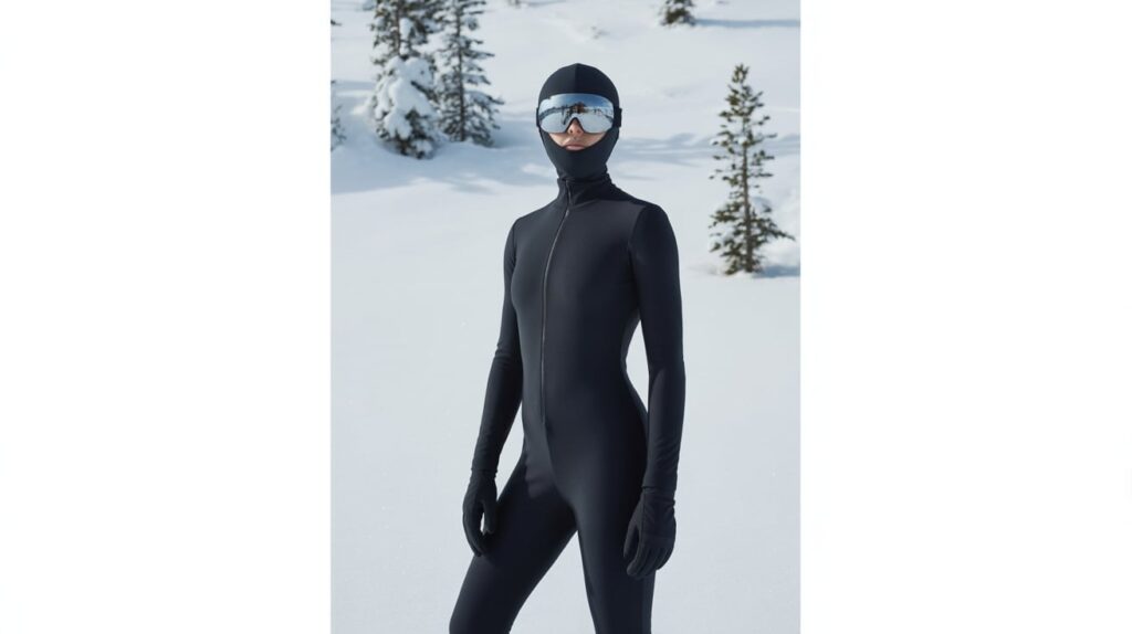 To keep it cozy, layer a thin merino base under the suit and choose wool socks with no bulky seams. For après, swap the helmet for a knit beanie and throw a long puffer over the suit while walking through town. The suit becomes your “one item outfit,” which saves packing space and decision time. If you want more color, add a bright balaclava peeking under the helmet for a fun, photo-friendly twist.