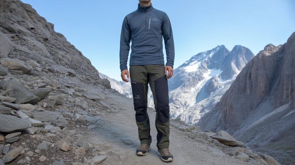 This outfit is ideal for hikes where you’ll heat up and cool down repeatedly. The moisture-wicking tee helps you stay dry, the grid fleece insulates without heaviness, and the windbreaker protects you on breezy ridgelines. It’s easy to adjust layers without stopping for long.