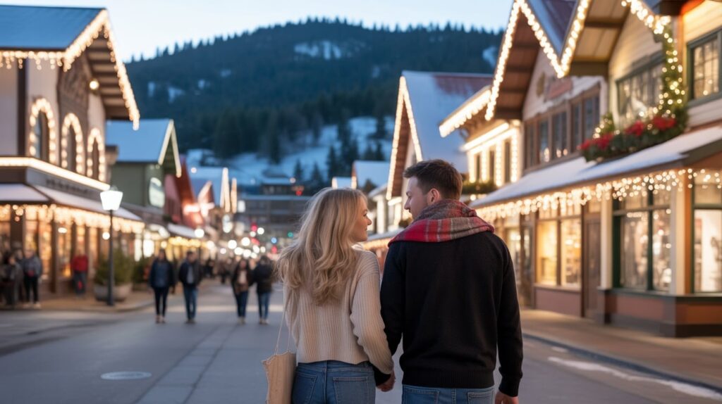 For photos, try a mid-street perspective from a safe curb area so the lights frame the scene. If you’re with friends, do a walking shot where everyone looks forward, not at the camera, for a candid travel feel. When you want a quick warm-up, duck into a shop for a minute, then step back outside for that instant fog-breath glow effect. (City of Leavenworth)