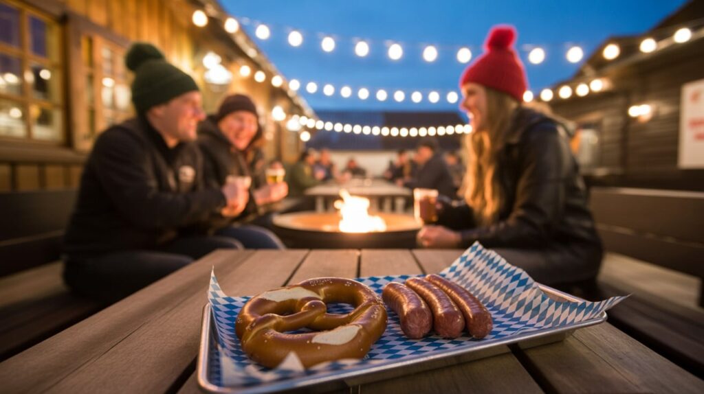 For photos, capture the fire glow reflecting on the food, then take a quick portrait with the lights overhead. If you’re making a “lights + food stops” pin, this is a perfect midpoint before your next drink stop. Bonus tip: keep napkins handy, because winter condiments and gloves are a messy combination, but the photos are worth it. (munchenhaus.com)