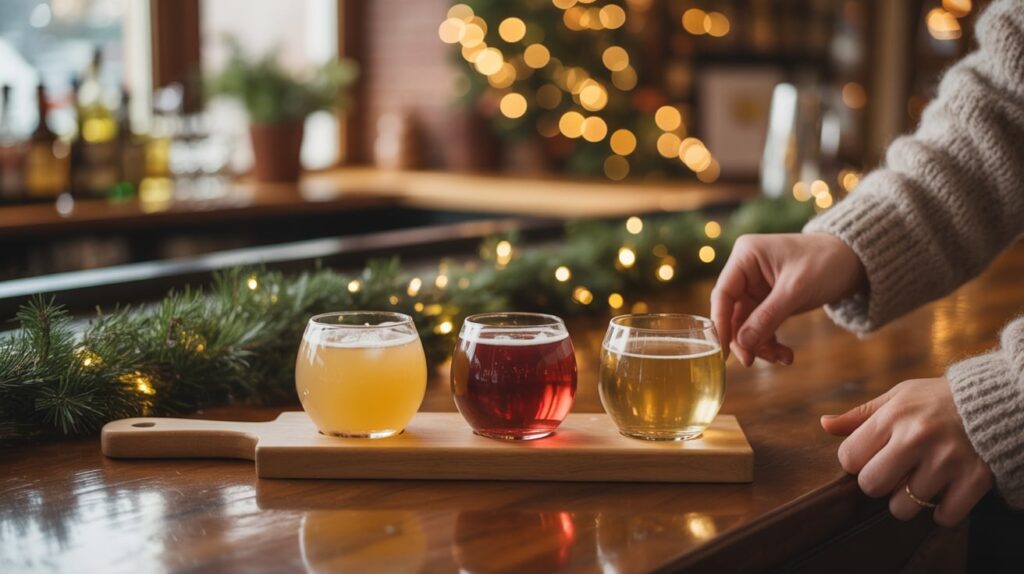 For photos, take one wide shot that includes lights, mugs, and a hint of the street, then do a close-up of glasses with bokeh behind. If you’re building a “Christmas map” graphic, label this as your drink checkpoint right after the main food street. It helps readers pace their own loop and feel like the night is planned. (Icicle Brewing Company)