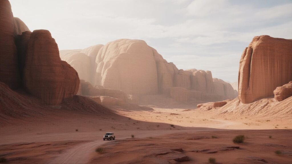Map pin: Southern Jordan near the Saudi border. Wadi Rum looks unreal because the scale is enormous and the rock shapes feel sculpted. Photograph it with negative space: a small subject (jeep, camel, or person) placed against a massive wall of stone. Natural arches and narrow canyons also make strong “frame within frame” shots.