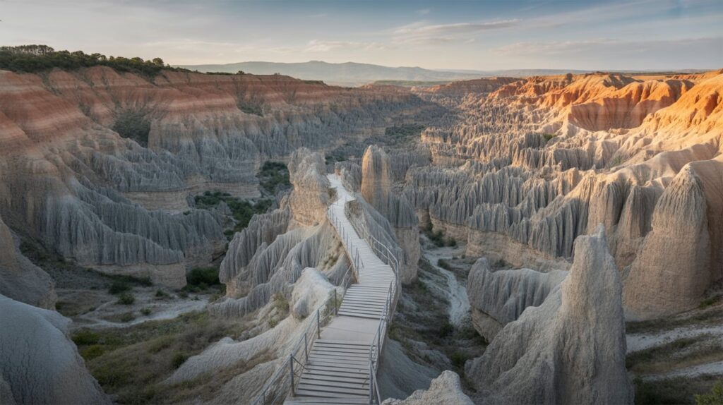 For photo planning, choose compositions that highlight the contrast between sharp rock and open voids. A wide lens can exaggerate the canyon drop, while a mid lens isolates repeating needles for graphic impact. Edit with crisp clarity and controlled contrast so the texture feels tactile without turning harsh.