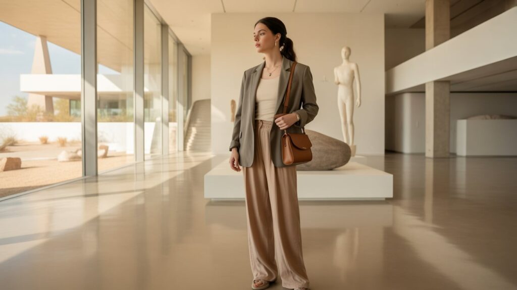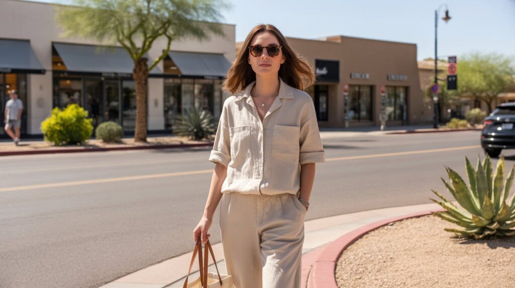 City days in Arizona can be hot and bright, so the goal is airflow without looking too casual. A polished warm-weather outfit helps you move from cafés to shops and still feel put together. Choose fabrics that breathe and don’t cling, and keep your silhouette relaxed to stay comfortable in peak sun. This outfit works well for Scottsdale, Tempe, and downtown Phoenix where you want comfort plus clean lines for photos.