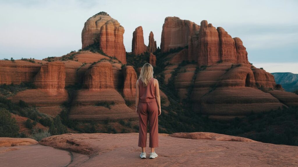 Sedona’s red rock scenery looks best with earthy colors that complement the landscape. This outfit balances comfort for short walks with a photo-ready palette that pops against sandstone. Think structured athleisure with one intentional layer, so you look styled without sacrificing movement. It’s ideal for viewpoint stops, easy trails, and casual lunch plans afterward. The goal is a clean silhouette, minimal fuss, and fabrics that stay comfortable in warm sun and mild shade.