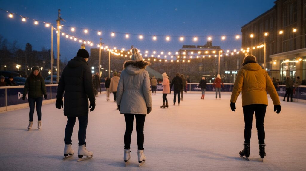 Make it part of your evening plan so you get the best lighting and atmosphere. Dress warmly and keep the goal simple: glide a few laps, laugh, and take breaks. Capture photos under the lights for that cozy-night look. It’s a fun way to end the day with energy, without needing a full outdoor adventure.
