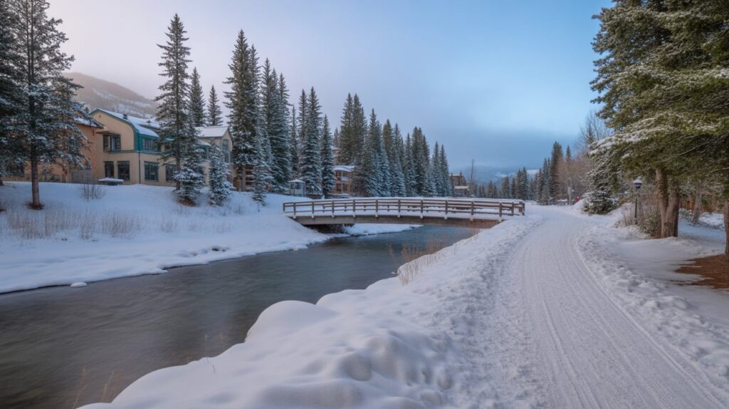The Riverwalk is a calm winter escape right in town, and it’s one of the easiest ways to feel the “quiet magic” without leaving Breckenridge. The path follows the water and gives you little scenic pauses—bridges, benches, and views of snow-laced trees. It’s perfect when you want a relaxing activity that still feels like an adventure.