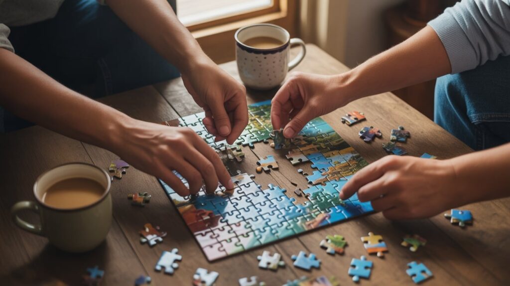 Pick a puzzle or game that matches your energy level. If you’re tired, choose something easy and relaxing. If you want laughter, choose something quick. The goal is shared time or a calm solo focus, not competition.