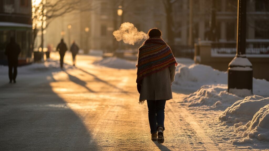 If you love Pinterest-style content, do a texture-focused winter walk. Photograph small details: snow on branches, ice patterns, footprints, and scarf textures. This turns a simple walk into a creative project. It makes winter feel more beautiful and less gray.