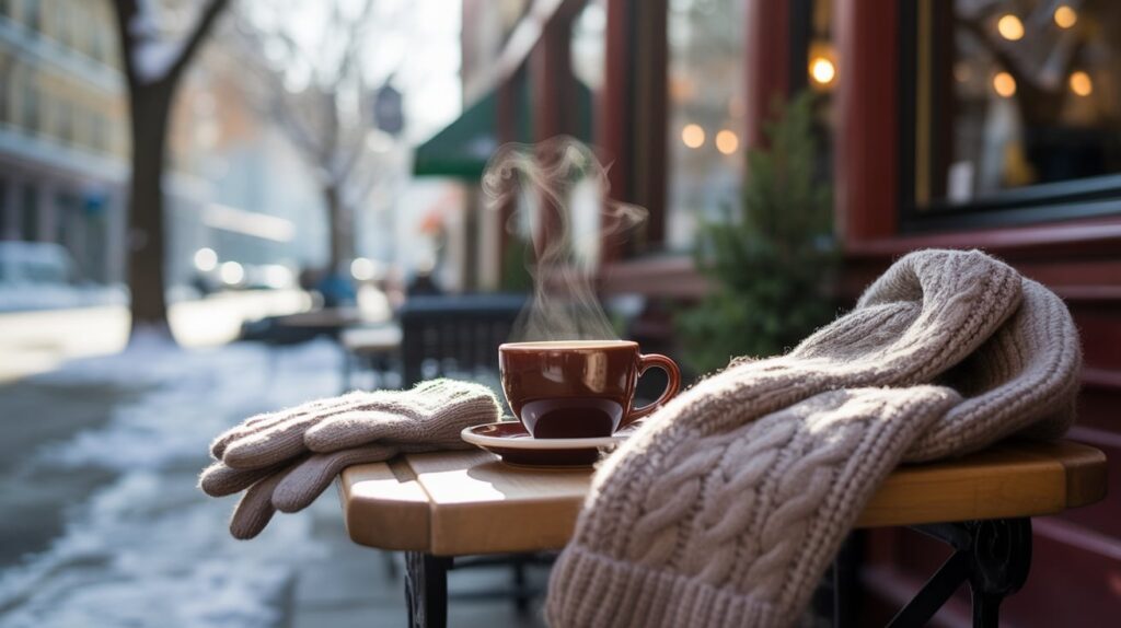 Pick a café or spot where you can sip something warm while watching winter life happen. Even a ten-minute stop outdoors feels like a little adventure. The cold makes the drink taste better, and the moment feels more vivid than staying inside.
