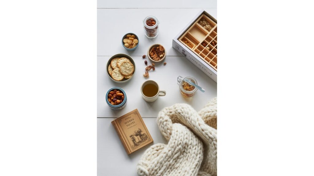 Make a small kit with things that instantly make you feel warm: tea, cocoa, socks, a candle, and one comfort activity like a book or puzzle. When a snow day hits, you don’t have to think. You just open the kit and start your cozy routine.