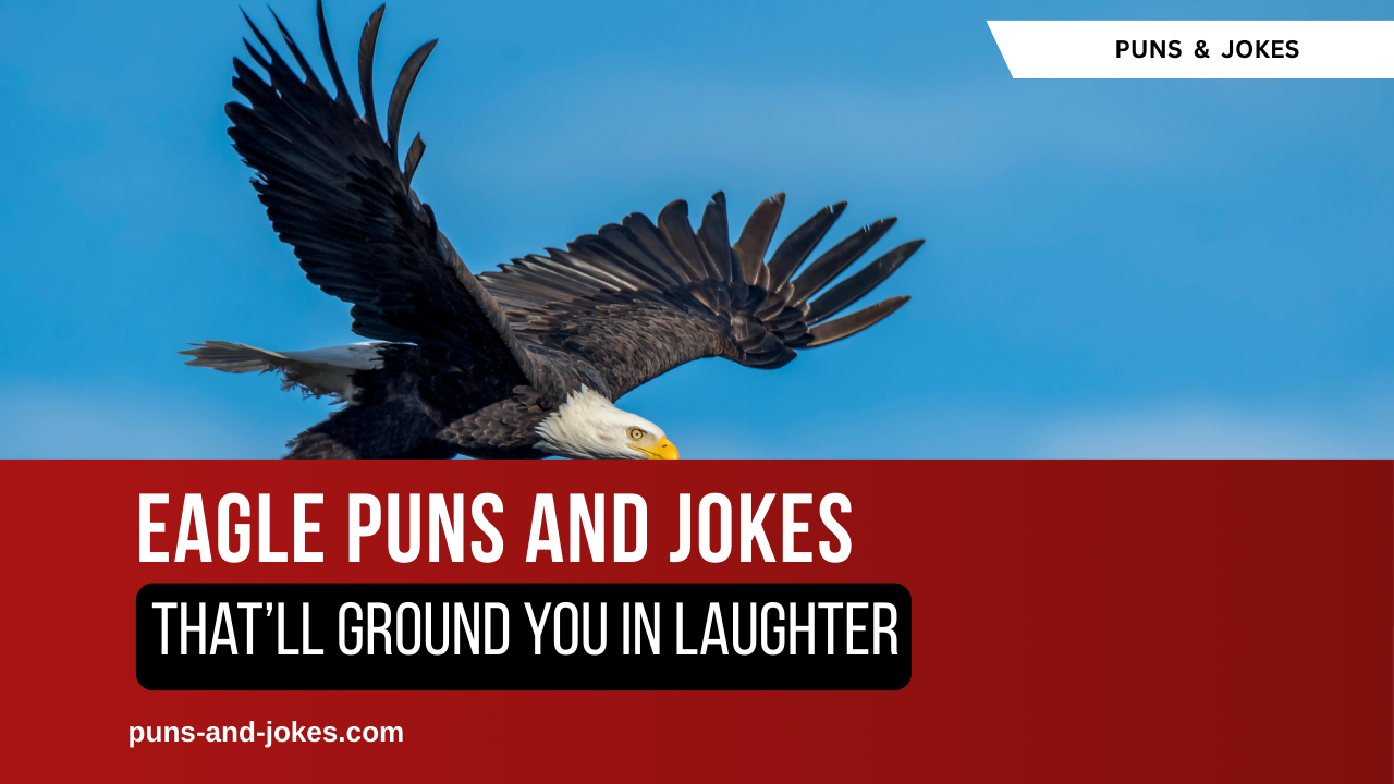 Eagle wordplay soars because it links sharp birds, sharp eyes, and sharp humor in one swoop. This collection gathers eagle puns and eagle jokes for kids, adults, captions, social posts, and even dad-level groans. Every line stays grounded in the same theme: birds of prey, wings, talons, skies, nests, and all the high-altitude drama that comes with them. You get short one-liners, longer story-style puns, cute lines for cards, and bolder jokes for grown-ups. By the end, “eagle humor” reads like a full nest of punchlines, ready for memes, Instagram posts, and everyday banter.