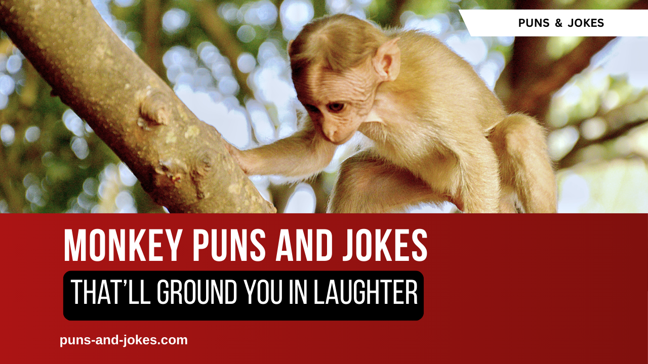 Monkey puns play on curiosity, climbing, copying, and social chaos.