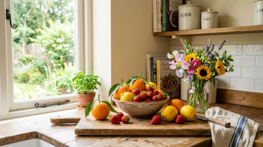 Summer fruit decor is one of the simplest ways to add color and freshness to your home. Bowls of oranges, lemons, strawberries, or limes look cheerful on kitchen counters, dining tables, or open shelves and make the space feel more alive. Since fruit is naturally colorful, it works as decor without looking over-styled.