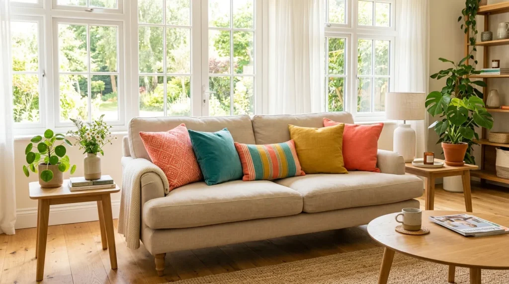 Colorful throw pillows are one of the easiest ways to add bright summer decor to your home. They instantly wake up neutral sofas, armchairs, and beds by adding fresh color without requiring a full redesign. Shades like coral, teal, mustard yellow, and soft citrus tones can make a room feel more lively and seasonal in just a few minutes.