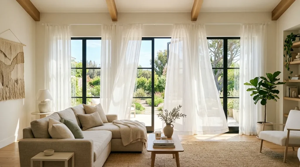 Light sheer curtains are perfect for creating that soft, breezy summer atmosphere at home. They allow sunlight to filter through in a gentle way, making the room feel brighter, more open, and more relaxed. Heavy curtains can sometimes make a room feel closed off, but sheer panels instantly create a lighter mood.