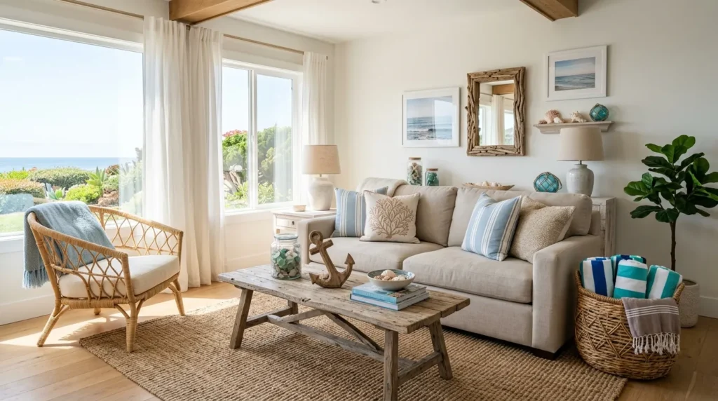 I’ve seen this look work especially well when it is kept simple. A few natural pieces, some airy textiles, and soft coastal colors can do a lot without overwhelming the room. It is ideal if you want your home to feel peaceful and bright, like a quiet retreat by the sea.