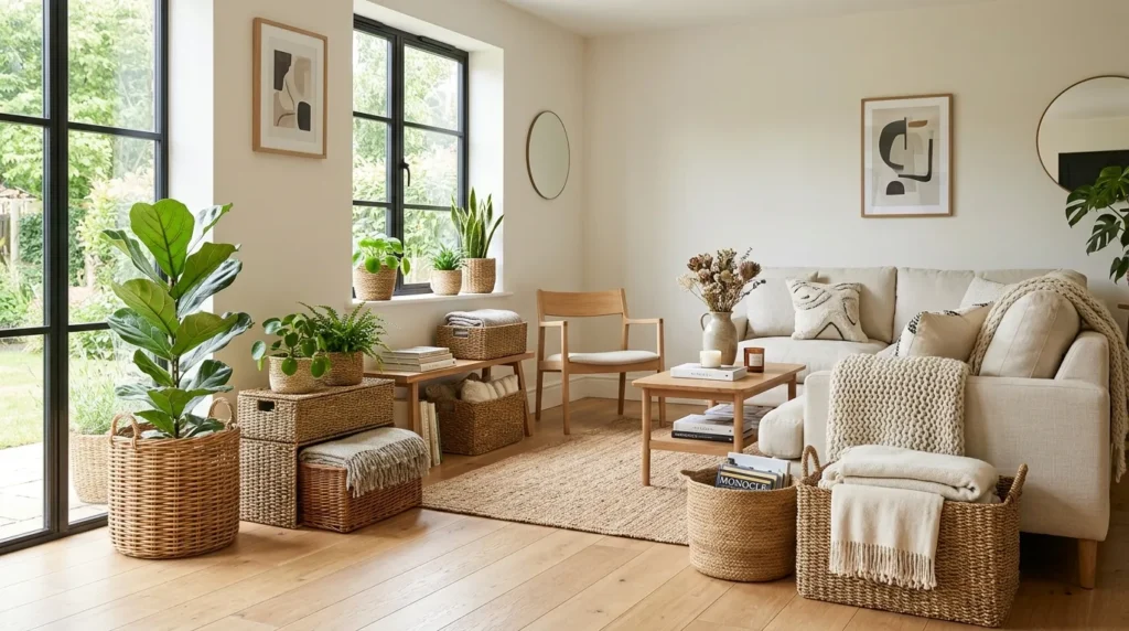 In my experience, plants can completely shift the mood of a room. They make empty corners feel finished and help neutral spaces feel more inviting. When styled in ceramic, woven, or earthy planters, they also add another layer of design without making the room feel cluttered.