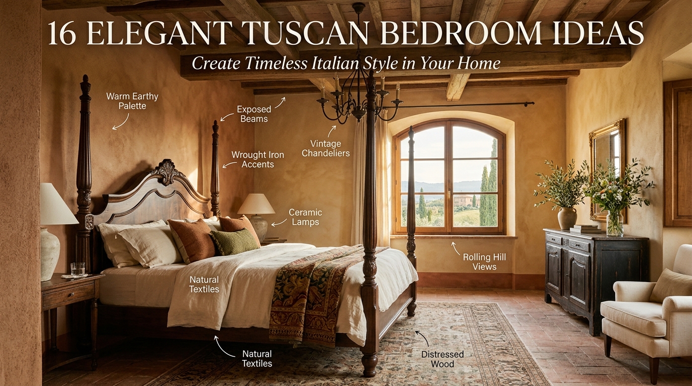 Are you ready to turn your home into a warm and timeless Tuscan retreat? This guide shares 16 elegant Tuscan bedroom ideas that bring together rustic charm, Mediterranean beauty, and cozy sophistication. In this first part, you’ll discover rich textures, earthy colors, and classic design details that make a space feel welcoming and full of character. If you love natural materials, old-world warmth, and elegant comfort, these ideas are a beautiful place to start.