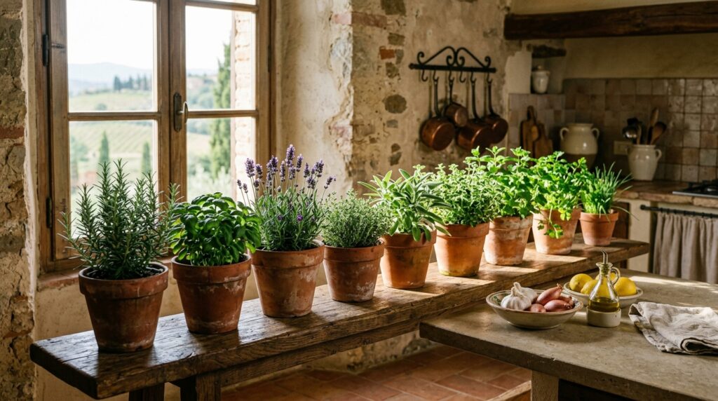 I’ve seen terra cotta work especially well when combined with herbs, olive branches, or lavender because it brings in that countryside Tuscan feeling so naturally. It is an affordable and timeless way to add texture, color, and authenticity to the space while keeping the overall design relaxed and elegant.
