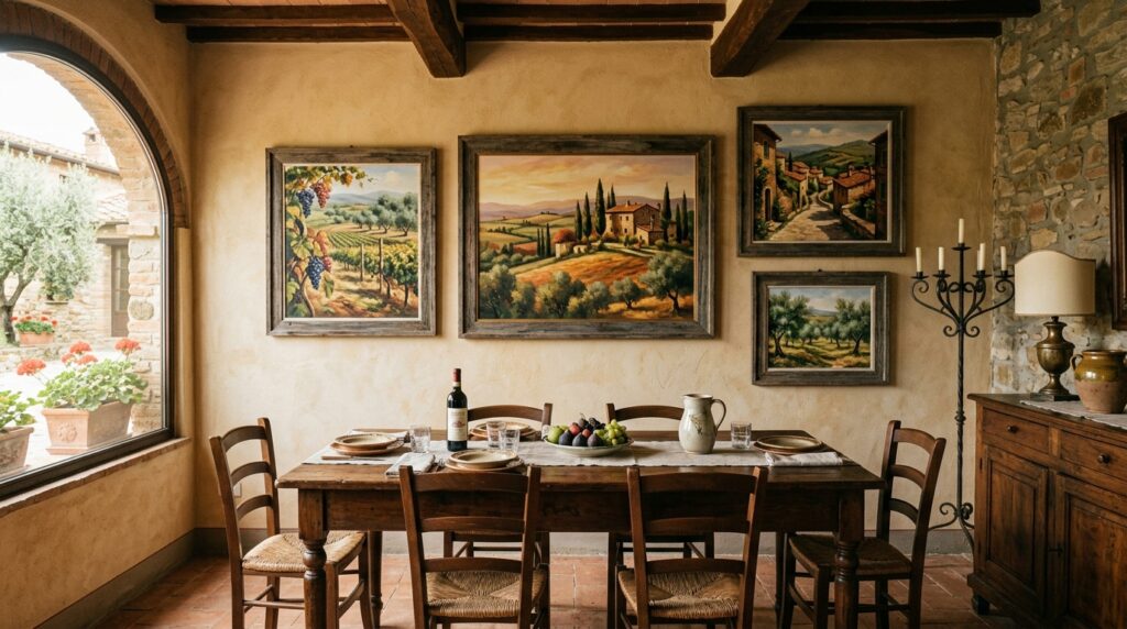 What makes it so effective is that it does more than decorate. It connects the room to a place, a mood, and a sense of history. I’ve noticed that when Tuscan art is paired with natural wood frames, warm walls, and soft textiles, the whole room feels richer, calmer, and more complete.