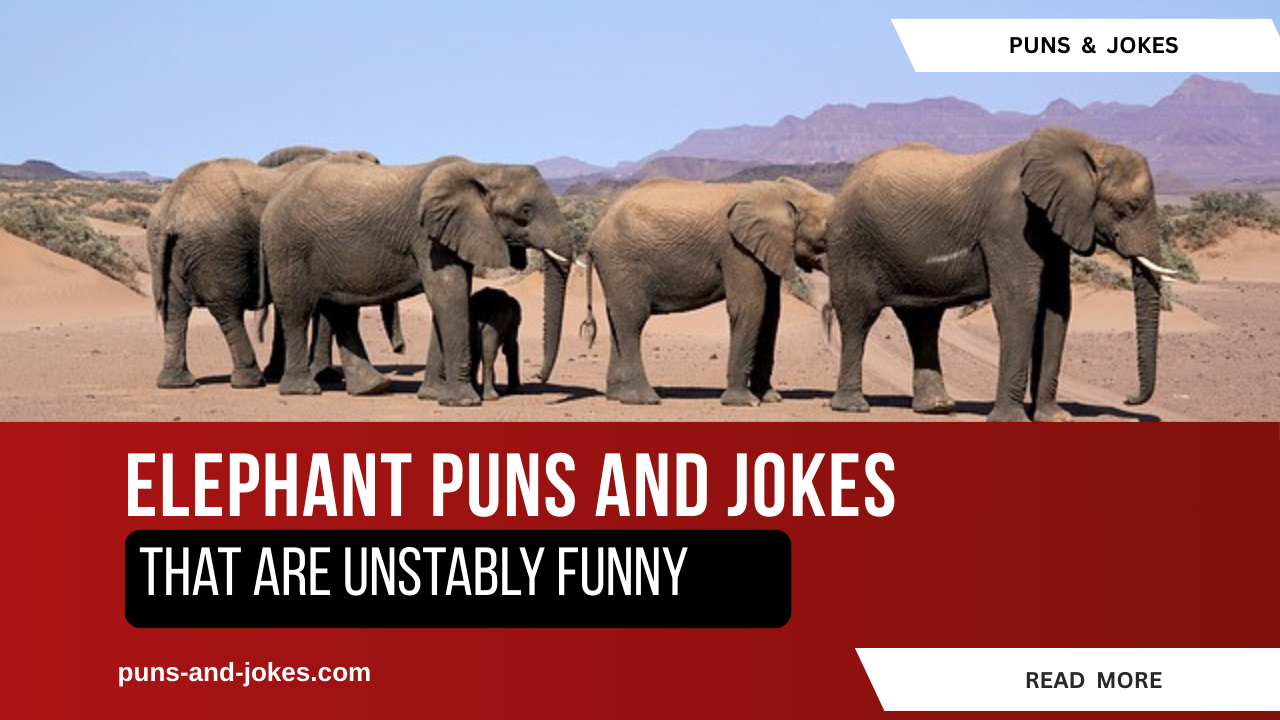 Elephants symbolize memory, weight, and gentle strength. This piece uses those traits to shape puns that fit cards, crafts, socials and speech. Each pun links trunk imagery, tusk wordplay, or herd metaphors to a use case. The tone stays light. The lines aim to be original and reusable. Read, reuse, and tweak as needed.