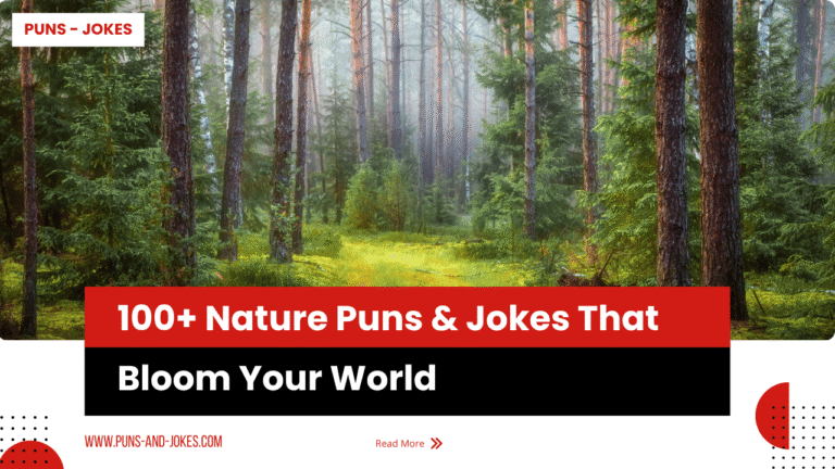 Nature already tells clear stories: trees root, rivers move, clouds gather. This collection turns those details into quick puns and jokes, from tiny captions to longer scenes, so a reader can match the right line to a photo, lesson, or moment. Themes range across trees, plants, flowers, fruit, vegetables, forests, animals, clay, water, oceans, lakes, mountains, weather, planets, and even social feeds such as Instagram and Reddit. Each line holds a concrete natural image and links it to a familiar feeling or situation, which keeps the humor easy to picture and easy to share. A person simply chooses a mood, then picks from the sets that follow.